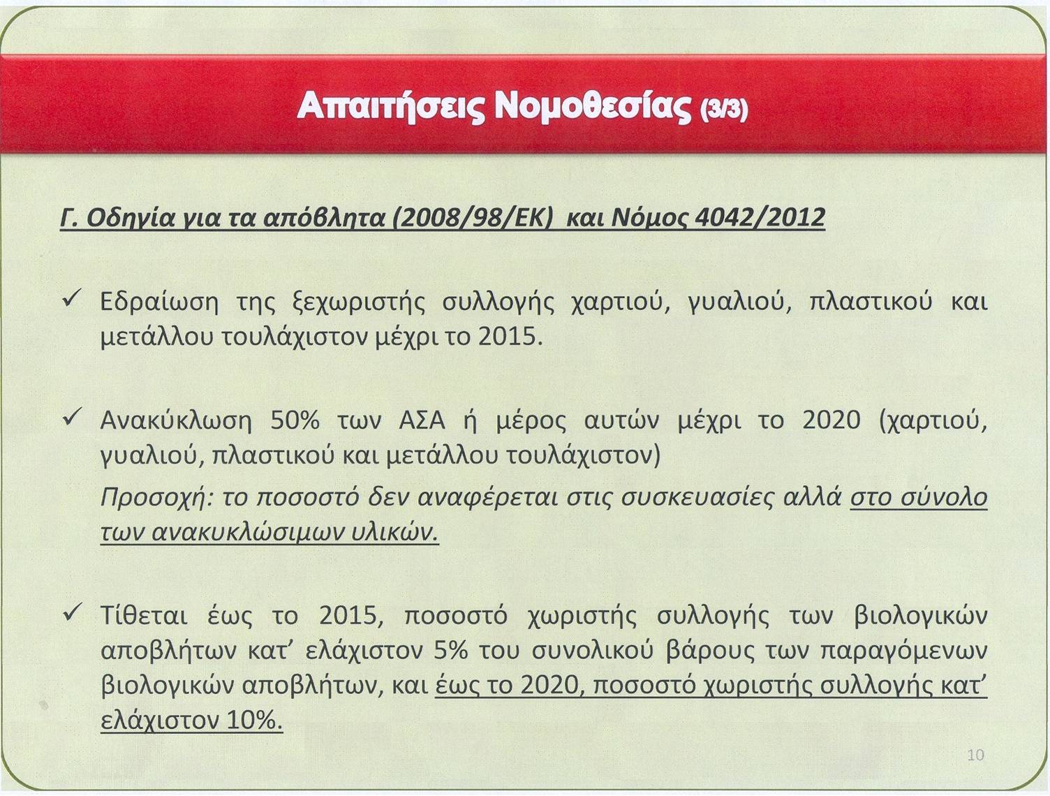 διαχείρισης των απορριμμάτων στηριγμένη στην Εθνική και Ευρωπαϊκή Νομοθεσία,